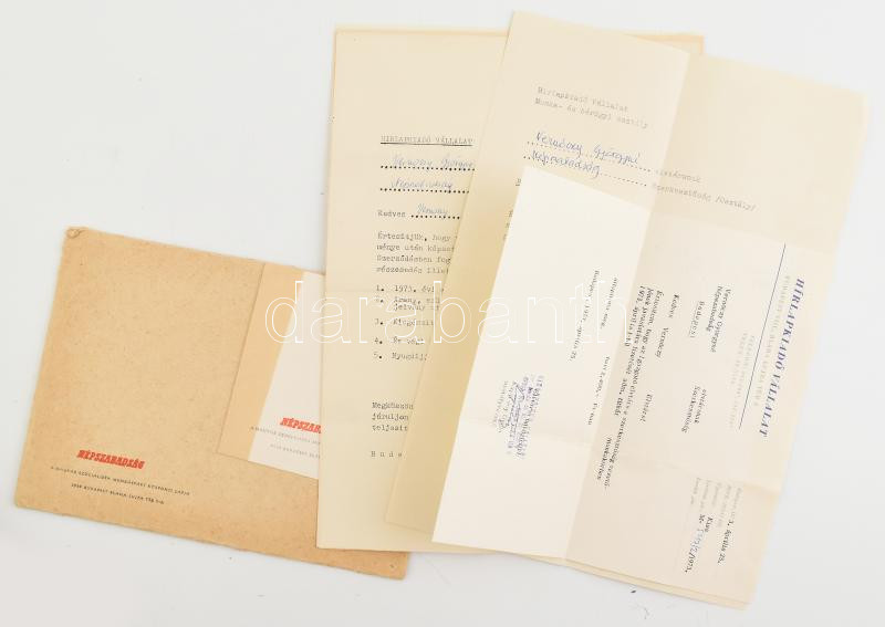 1972-1974 A Népszabadság titkárnőjének kinevezési iratai, borítékok https://www.darabanth.com/de/439-Fernauktion/439.0/Kunst-Dokumente-andere-Sammelgebiete/Dokument~1000020/1972-1974-A-Nepszabadsag-titkarnojenek-kinevezesi-iratai-boritekok~II2880979