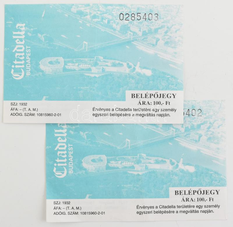 cca 2000 Citadella, Bp., 2 db sorszámkövető belépőjegy, lapszéli kiseb... https://www.darabanth.com/de/439-Fernauktion/439.0/Kunst-Dokumente-andere-Sammelgebiete/Dokument~1000020/cca-2000-Citadella-Bp-2-db-sorszamkoveto-belepojegy-lapszeli-kisebb-szakadassal~II2885837