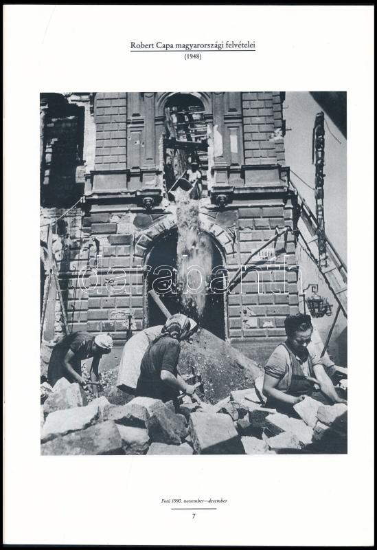 1990 Robert Capa magyarországi felvételei (1948). A Fotó 1990. nov.-dec. számának melléklete. Bp., Arany János Lap- és Könyvkiadó (Révai-ny.), 48 p. Fekete-fehér fotókkal. Tűzött papírkötés.