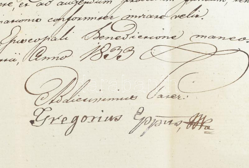 1833 Eperjes első püspöke, Tarkovics Gergely által aláírt egyházi hiva... https://www.darabanth.com/de/439-Fernauktion/439.0/Kunst-Dokumente-andere-Sammelgebiete/Historische-Dokumenten-Handschriften~1000021/1833-Eperjes-elso-puspoke-Tarkovics-Gergely-altal-alairt-egyhazi-hivatalos-level~II2883184