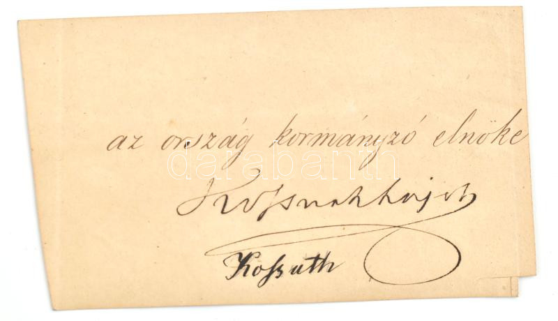1849 Kossuth Lajos (1802-1894) kormányzó, autográf aláírása kivágáson ... https://www.darabanth.com/de/439-Fernauktion/439.0/Kunst-Dokumente-andere-Sammelgebiete/Historische-Dokumenten-Handschriften~1000021/1849-Kossuth-Lajos-1802-1894-kormanyzo-autograf-alairasa-kivagason-13x6-cm~II2884929