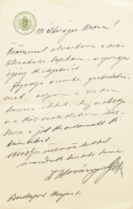1914 Hoványi Géza, a Képviselőház jegyzője, képviselő által írt levél ... https://www.darabanth.com/de/439-Fernauktion/439.0/Kunst-Dokumente-andere-Sammelgebiete/Historische-Dokumenten-Handschriften~1000021/1914-Hovanyi-Geza-a-Kepviselohaz-jegyzoje-kepviselo-altal-irt-level-Bary-Jozsefhez~II2883547