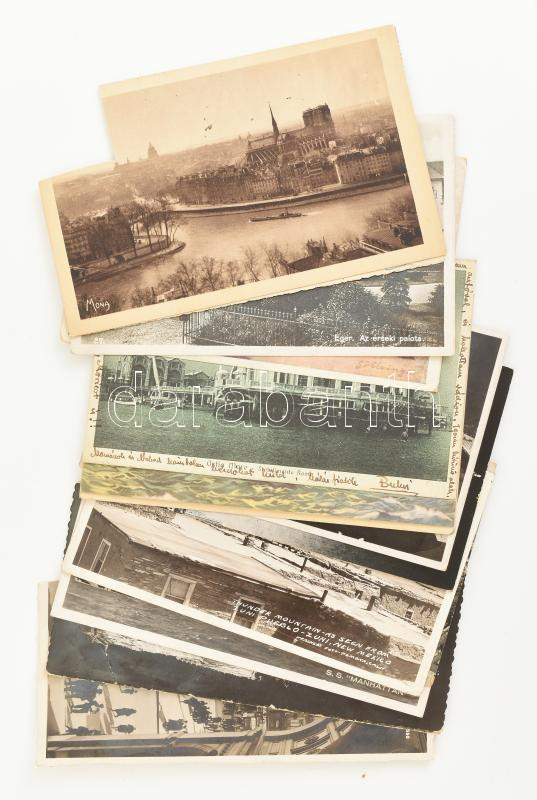 Beschreibung: 1925-1938 Dr. Hüttl Dezső (1870-1945) építész, műegyetemi tanár részére írt képes levelezőlapok, kivágott bélyegzésekkel, össz. 16 db
