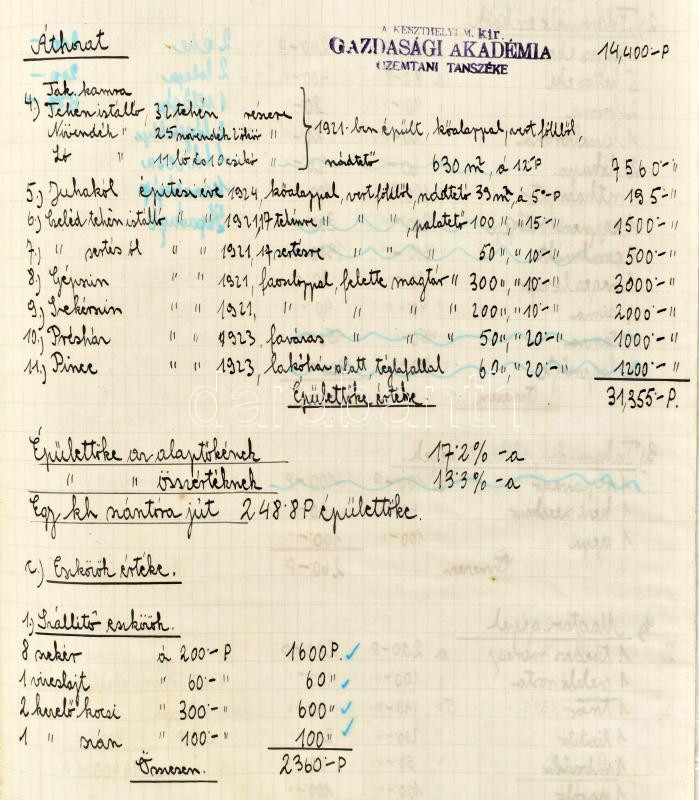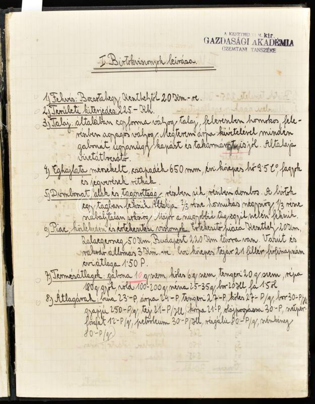 cca 1930 A Szentkirályi család sajának Szentkirályi Bélának diplomamunkája a Bocsotahegyi zalahosszúújfalui (Zalaapáti) gazdaság üzemtervéről. Kézzel írt, rajzolt térképpel + hozzá egy forgatható vemhességi naptár