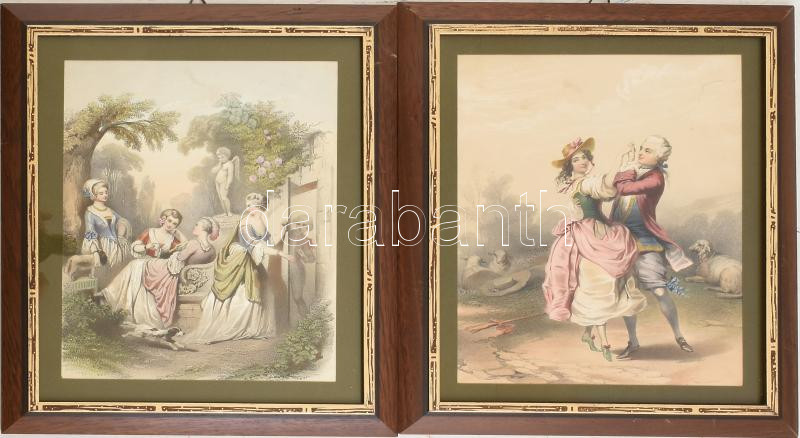 Beschreibung: Dekoratív fakeret 2db, rokokó jelenet litográfiával. 29x23 cm