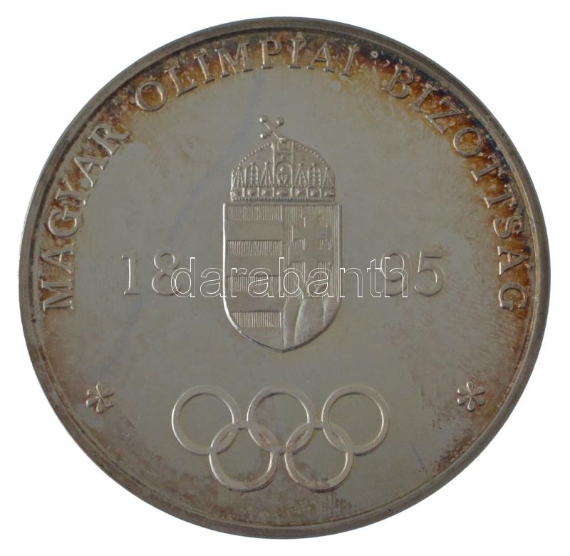 1998. "Magyar Olimpiai Bizottság 1895 / For the Olympic Movement - Hungary" jelzetlen Ag emlékérem "124" sorszámú tanúsítvánnyal, eredeti dísztokban (85g/0.925/60mm) T:AU (PP) patina, ujjlenyomat, karc