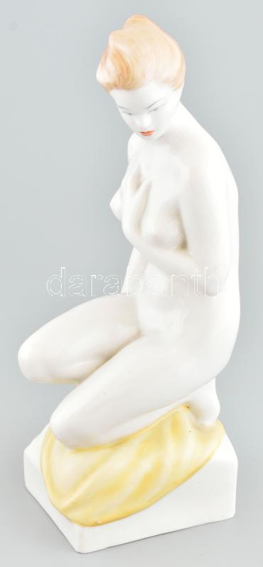 Beschreibung: Hollóházi térdelő akt. Kézzel festett, jelzett, hibátlan, m: 30 cm