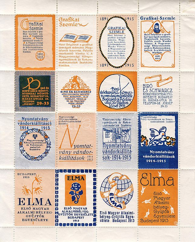 1915 ELMA levélzárók 16-as kisív https://www.darabanth.com/de/44-Fernauktion/44.0/Andere-Sammelgebiete/~215/1915-ELMA-levelzarok-16-as-kisiv~II87273