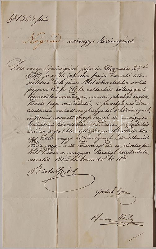 Beschreibung: 1866. Szökött fegyenc helytartótanács általi körözése