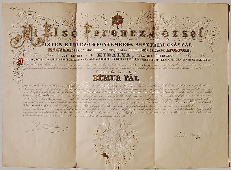 1869 Nagyalakú kanonoki kinevezés Bémer Pál részére Ferencz József saj... https://www.darabanth.com/de/44-Fernauktion/44.0/Andere-Sammelgebiete/~251/1869-Nagyalaku-kanonoki-kinevezes-Bemer-Pal-reszere-Ferencz-Jozsef-sajat-kezu-alairasav~II86734