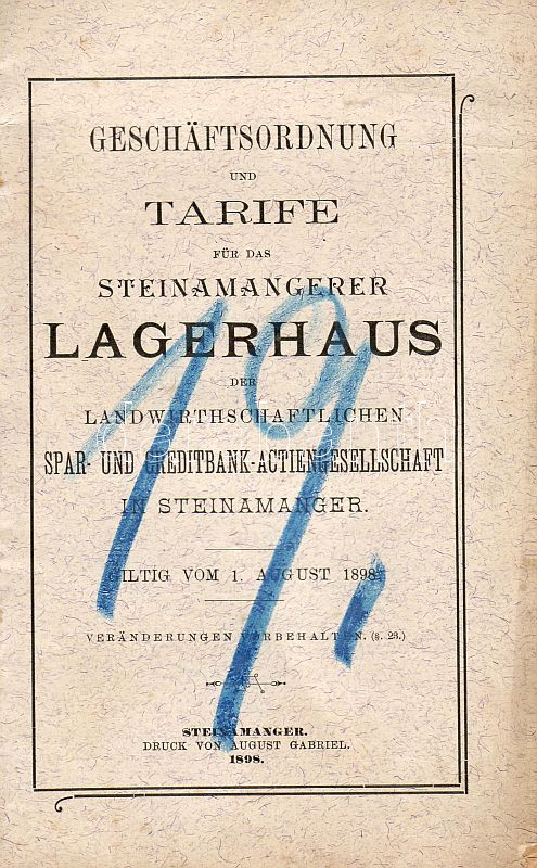 1898 A Szombathelyi raktárház árjegyzéke német nyelven https://www.darabanth.com/de/44-Fernauktion/44.0/Andere-Sammelgebiete/~253/1898-A-Szombathelyi-raktarhaz-arjegyzeke-nemet-nyelven~II87077