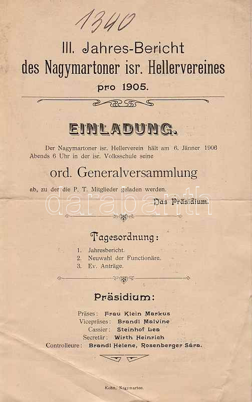 1905 Meghívó a nagymartoni izraelita segélyező szövetkezet közgyűlésér... https://www.darabanth.com/de/44-Fernauktion/44.0/Andere-Sammelgebiete/~253/1905-Meghivo-a-nagymartoni-izraelita-segelyezo-szovetkezet-kozgyulesere~II87085