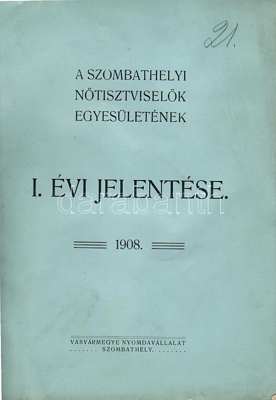 1908 A Szombathelyi nőtisztviselők egyesületének jelentése https://www.darabanth.com/de/44-Fernauktion/44.0/Andere-Sammelgebiete/~253/1908-A-Szombathelyi-notisztviselok-egyesuletenek-jelentese~II87055