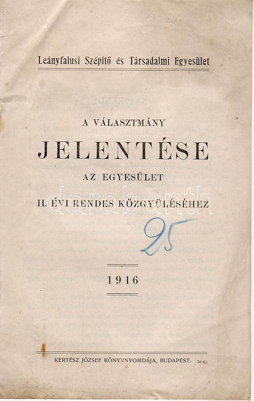 1916 A Leányfalusi Szépítő és Társadalmi egyesület jelentése https://www.darabanth.com/de/44-Fernauktion/44.0/Andere-Sammelgebiete/~253/1916-A-Leanyfalusi-Szepito-es-Tarsadalmi-egyesulet-jelentese~II87061