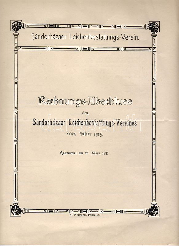 1916 A Sándorházai Temetkezési Egylet éves jelentése https://www.darabanth.com/de/44-Fernauktion/44.0/Andere-Sammelgebiete/~253/1916-A-Sandorhazai-Temetkezesi-Egylet-eves-jelentese~II87079
