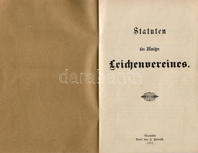 1917 Az Ilmici temetkezési egylet alapszabáylai német nyelven / Statut... https://www.darabanth.com/de/44-Fernauktion/44.0/Andere-Sammelgebiete/~253/1917-Az-Ilmici-temetkezesi-egylet-alapszabaylai-nemet-nyelven-Statuten-der-Illmitzer-Leichenver~II87075