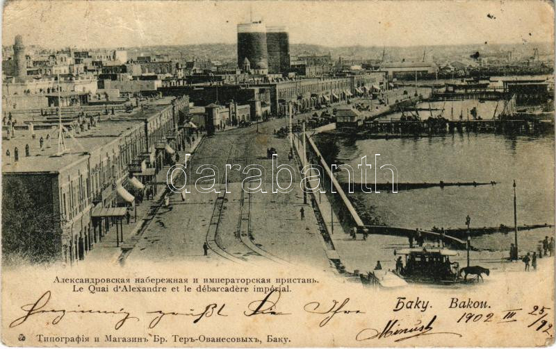 1902 Baku, Bakou; Le Quai d'Alexandre et le débarcadere impérial ... https://www.darabanth.com/de/44-Gross-Auktion/44.1/Ansichtskarten/Aserbaidschan~18269/1902-Baku-Bakou-Le-Quai-dAlexandre-et-le-debarcadere-imperial-quay-fa~II2881834