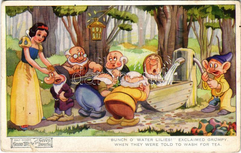 Beschreibung: 1938 Walt Disney Snow White and the Seven Dwarfs. Valentine & Sons 4167. / Hófehérke és a hét törpe (surface damage)