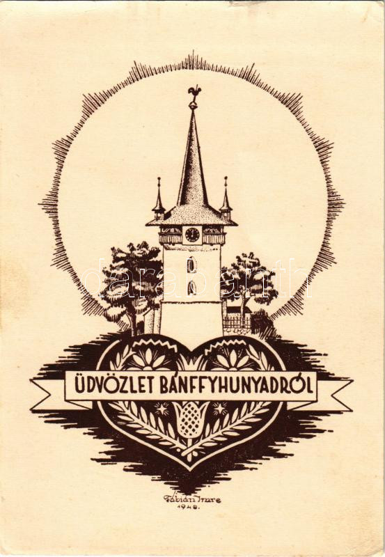 Bánffyhunyad, Huedin; Üdvözlet! református templom / Calvinist church ... https://www.darabanth.com/de/44-Gross-Auktion/44.1/Ansichtskarten/Irredenta~18237/Banffyhunyad-Huedin-Udvozlet-reformatus-templom-Calvinist-church-s-Fabian-Imre-EB~II3062338