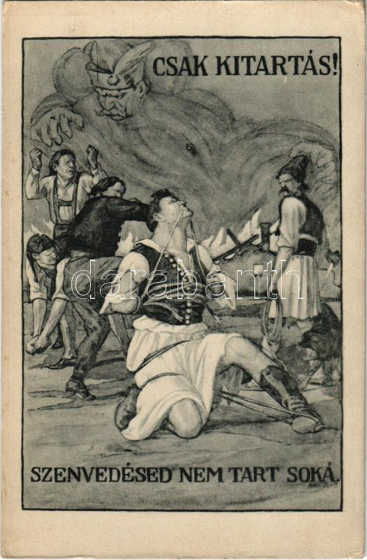 Beschreibung: Csak kitartás! Szenvedésed nem tart soká! Magyarország Területi Épségének Védelmi Ligájának kiadása / Hungarian irredenta art postcard s: Sándor B. (EK)