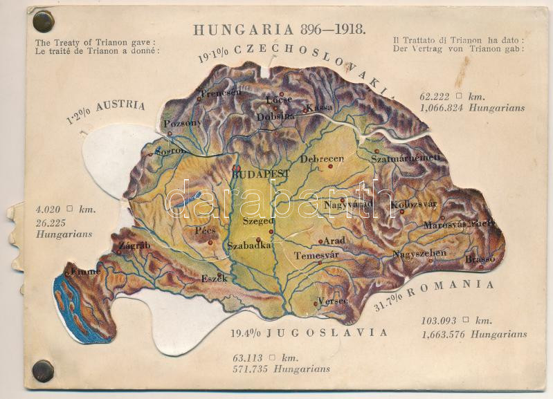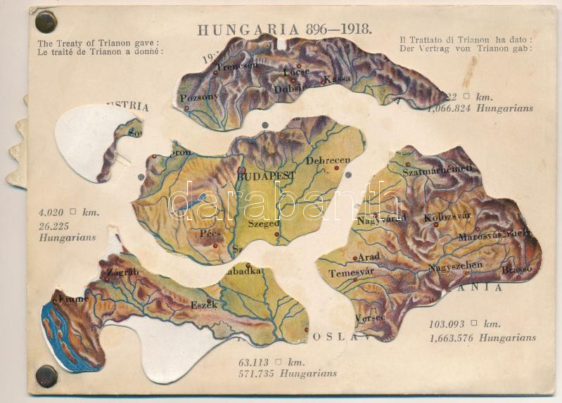 Hungaria 896-1918 - mechanikus térképes irredenta lap / Map of Hungary, Irredenta mechanical postcard. Published by the Hungarian Women's National Association. Fecit: Emich