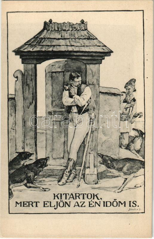 Kitartok, mert eljön az én időm is. Magyarország Területi Épségének Védelmi Ligája kiadása / Hungarian irredenta propaganda art postcard, Trianon s: Sándor B.