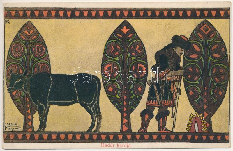 Beschreibung: Magyar stylustanulmányok. Hadúr kardja. Magyar Adorján kiadása (Zelenika, Dalmácia 1914) / Ungarische Studien / Hungarian folklore art postcard s: Magyar (EK)