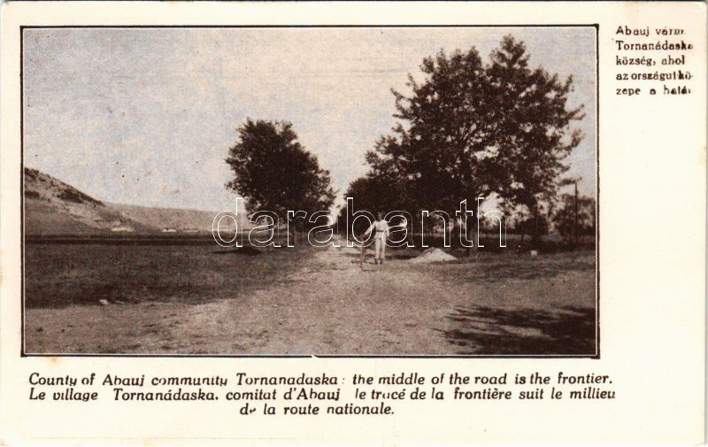 Tornanádaska, Magyarország trianoni lehetetlen határáról. Abaúj várm. Tornanádaska község, ahol az országút közepe a határ. Magyar Nemzeti Szövetség kiadása / The impossible borders of Hungary after Trianon, irredenta propaganda (gyűrődés / crease)