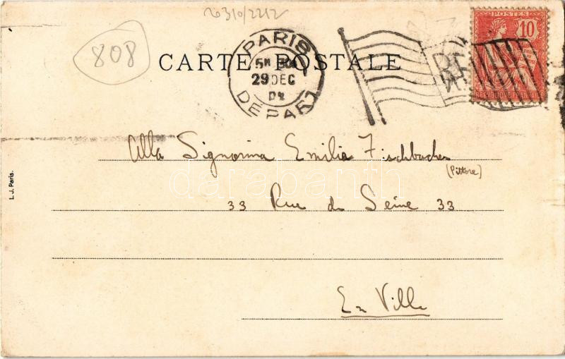 Beschreibung: Art Nouveau lady with a horseshoe. L. J. Paris. litho s: Raphael Kirchner (kis szakadások / small tears)