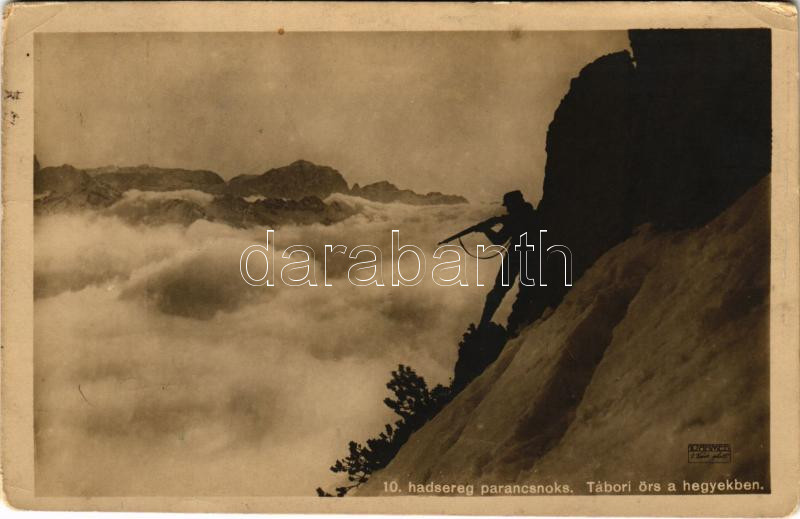 1917 10. Hadsereg parancsnoka, tábori örs a hegyekben. Hadifénykép Kiállítás, A Hadsegélyező Hivatal kiadványa / WWI Austro-Hungarian K.u.K. military, field guard in the mountains (EK)