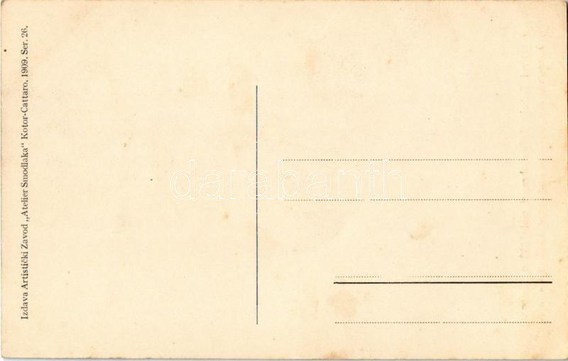 Prvi Bokeljski Domobranci god 1882 u Kotor / Die erste bocchesische Landwehr 1882 in Cattaro / Az első dalmát honvédő katonák 1882-ben Kotorban / The first Bocchesian militia in 1882 in Kotor, Dalmatian national defenders. Atelier Smodlaka 1909. Ser. 26.