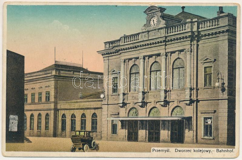 1916 Przemysl, Dworzec kolejowy / Bahnhof / railway station, automobil... https://www.darabanth.com/de/44-Gross-Auktion/44.1/Ansichtskarten/Polen~18300/1916-Przemysl-Dworzec-kolejowy-Bahnhof-railway-station-automobile-fl-plus-Kuk-Feldpostamt-~II3121587