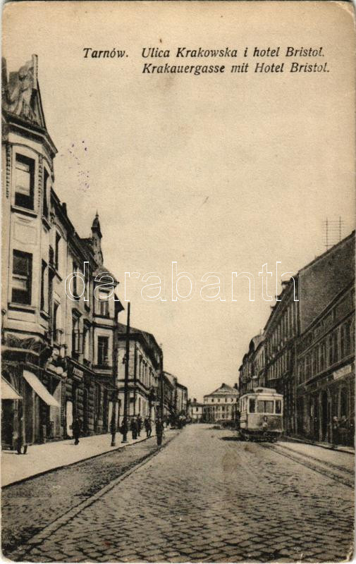Tarnów, Ulica Krakowska i Hotel Bristol / street, tram (EK) https://www.darabanth.com/de/44-Gross-Auktion/44.1/Ansichtskarten/Polen~18300/Tarnow-Ulica-Krakowska-i-Hotel-Bristol-street-tram-EK~II3121601