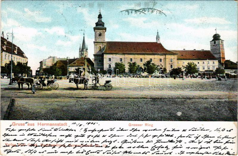 1905 Nagyszeben, Hermannstadt, Sibiu; Grosser Ring / Nagy piac. Karl G... https://www.darabanth.com/de/44-Gross-Auktion/44.1/Ansichtskarten/Siebenburgen~18210/1905-Nagyszeben-Hermannstadt-Sibiu-Grosser-Ring-Nagy-piac-Karl-Graef-kiadasa-market-square~II3348853