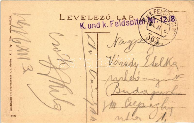 1916 Kézdivásárhely, Targu Secuiesc; Kisegítő Takarékpénztár r.t., Első Magyar Biztosító Társaság kerületi főügynöksége / savings bank, insurance company + "K. und K. Feldspital Nr. 12/8" "K.U.K. FELDPOSTAMT 363" (EK)