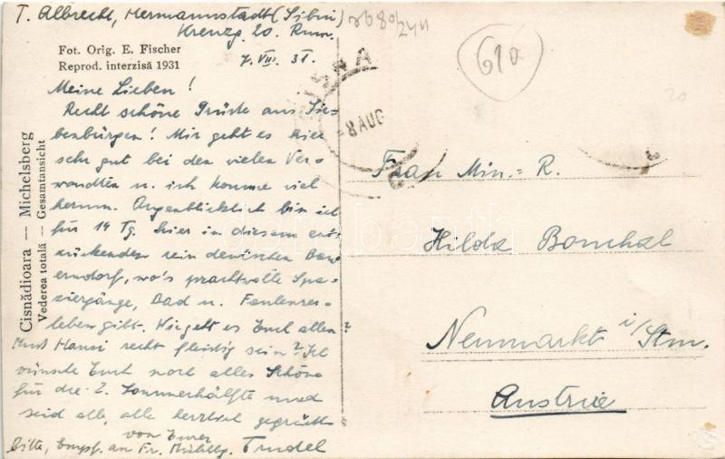 1931 Kisdisznód, Michelsberg, Cisnadioara; Vederea totala / látkép, vá... https://www.darabanth.com/de/44-Gross-Auktion/44.1/Ansichtskarten/Siebenburgen~18210/1931-Kisdisznod-Michelsberg-Cisnadioara-Vederea-totala-latkep-var-general-view-castle-~II3349058