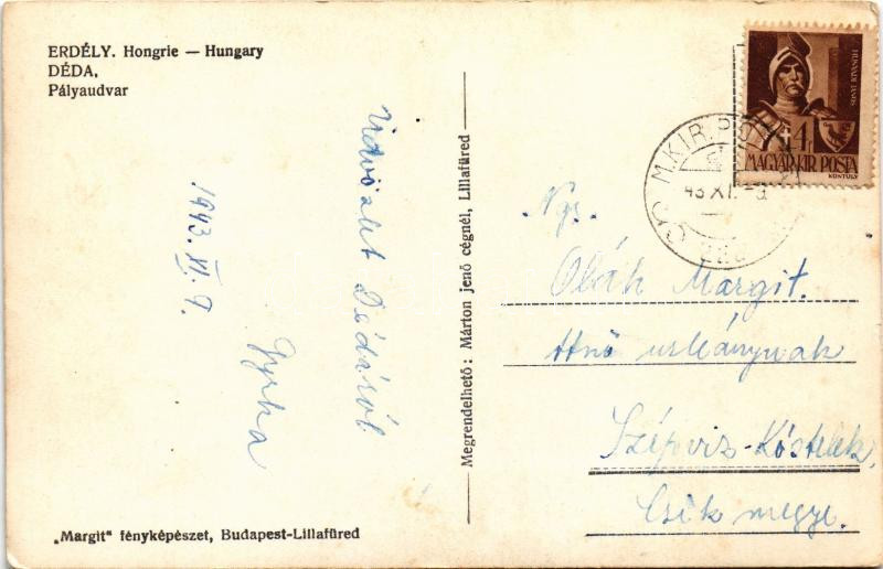 1943 Déda, Deda; Pályaudvar, vasútállomás / railway station (EK) https://www.darabanth.com/de/44-Gross-Auktion/44.1/Ansichtskarten/Siebenburgen~18210/1943-Deda-Deda-Palyaudvar-vasutallomas-railway-station-EK~II3342176