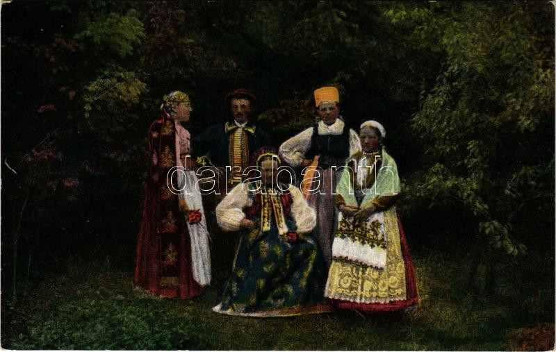 Beschreibung: Prázsmár, Tartlau, Presmer, Prejmer; szász népviselet. Erdélyi udvari fényképész felvétele. Vasúti levelezőlapárusítás / Transylvanian Saxon folklore