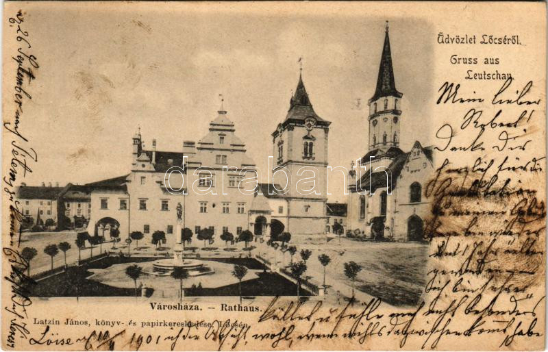 1901 Lőcse, Levoca; Városháza. Latzin János kiadása / Rathaus / town h... https://www.darabanth.com/de/44-Gross-Auktion/44.1/Ansichtskarten/Slowakei~18211/1901-Locse-Levoca-Varoshaza-Latzin-Janos-kiadasa-Rathaus-town-hall-vagott-cut~II2873032