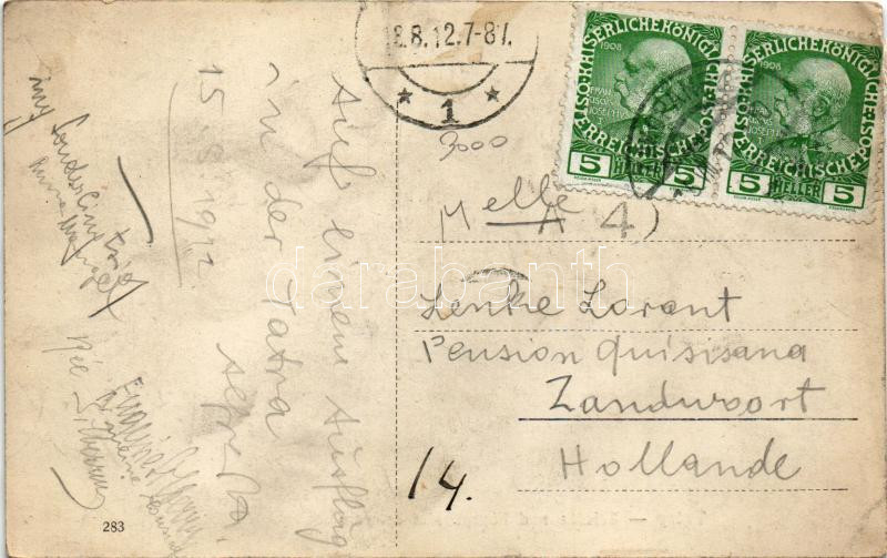 1912 Tatry, Tátra; Sciezka nad Popradzkim Stawem / lake (fl) https://www.darabanth.com/de/44-Gross-Auktion/44.1/Ansichtskarten/Slowakei~18211/1912-Tatry-Tatra-Sciezka-nad-Popradzkim-Stawem-lake-fl~II3341139