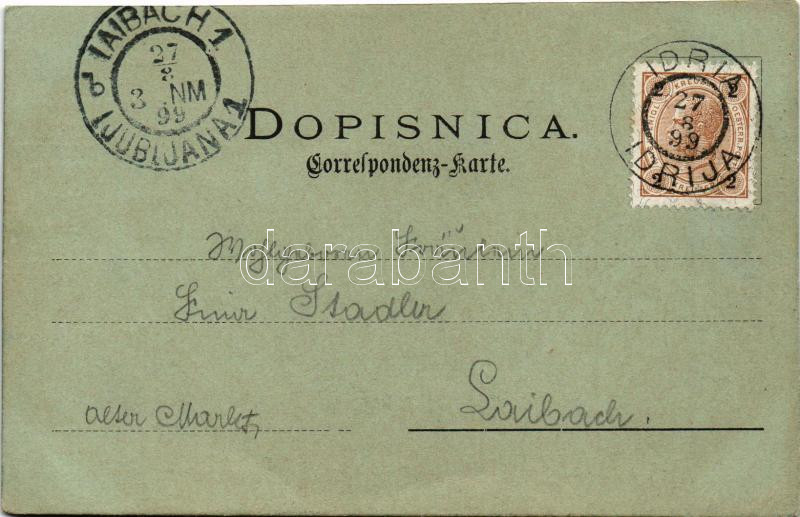 1899 (Vorläufer) Idrija, Idria; general view, church (worn corners) https://www.darabanth.com/de/44-Gross-Auktion/44.1/Ansichtskarten/Slowenien~18326/1899-Vorlaufer-Idrija-Idria-general-view-church-worn-corners~II3289573