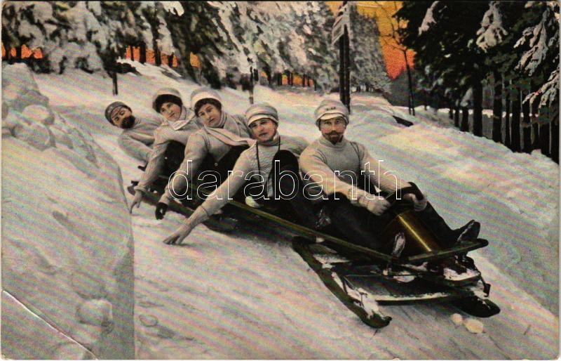 1910 Téli sport, bobszánkó / Winter sport, bobsleigh. T. Co. 2052 (EB) https://www.darabanth.com/de/44-Gross-Auktion/44.1/Ansichtskarten/Sport~18254/1910-Teli-sport-bobszanko-Winter-sport-bobsleigh-T-Co-2052-EB~II3063305