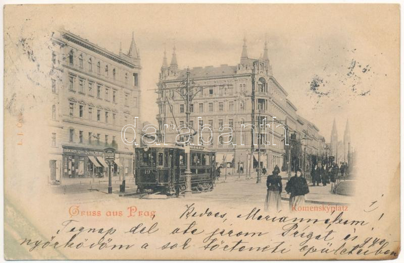 1899 (Vorläufer) Praha, Prag, Prague; Komenskyplatz / street view, tra... https://www.darabanth.com/de/44-Gross-Auktion/44.1/Ansichtskarten/Tschechische-Republik~18279/1899-Vorlaufer-Praha-Prag-Prague-Komenskyplatz-street-view-tram-Karel-Zajicek-shop-L-J-~II3108542