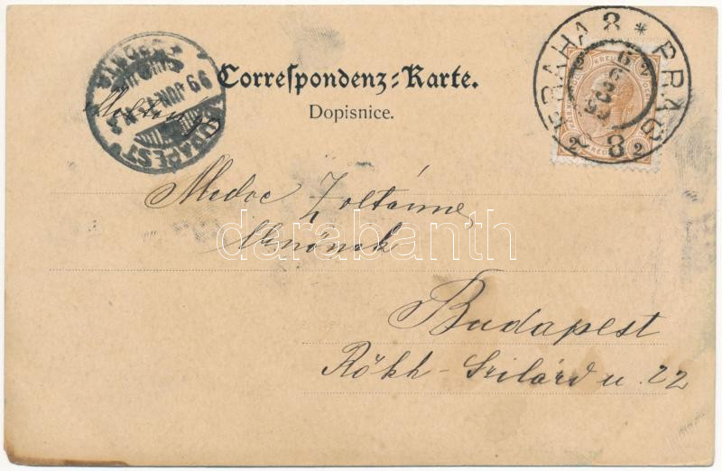 Beschreibung: 1899 (Vorläufer) Praha, Prag, Prague; Komenskyplatz / street view, tram, Karel Zajicek shop. L. J. (ázott / wet damage)