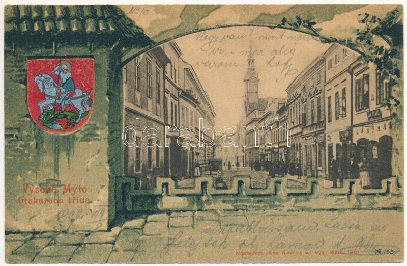 1902 Vysoke Myto, Otakarová trída / street, shops. Jana Novák Art Nouv... https://www.darabanth.com/de/44-Gross-Auktion/44.1/Ansichtskarten/Tschechische-Republik~18279/1902-Vysoke-Myto-Otakarova-trida-street-shops-Jana-Novak-Art-Nouveau-coat-of-arms-litho~II3124739