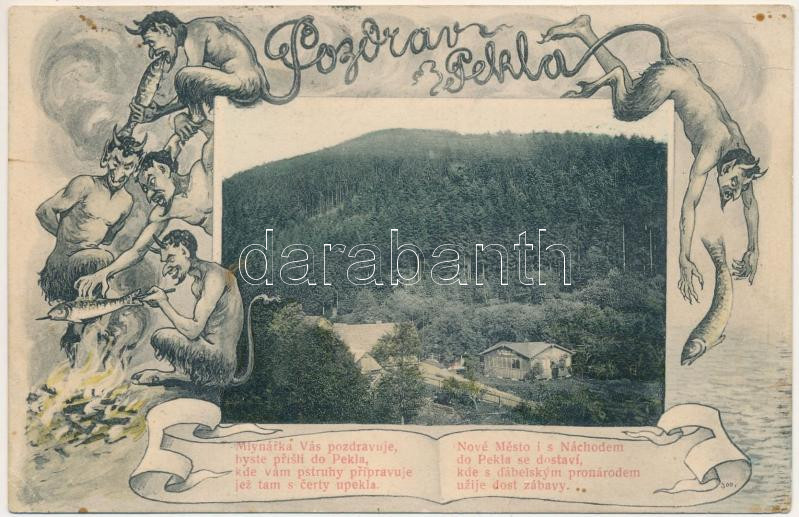 1912 Peklo, Pekla (Náchod), Art Nouveau greeting with satyrs (r) + &qu... https://www.darabanth.com/de/44-Gross-Auktion/44.1/Ansichtskarten/Tschechische-Republik~18279/1912-Peklo-Pekla-Nachod-Art-Nouveau-greeting-with-satyrs-r-plus-FPA-BRAUNAU-CHOTZEN-NO-86~II3121577