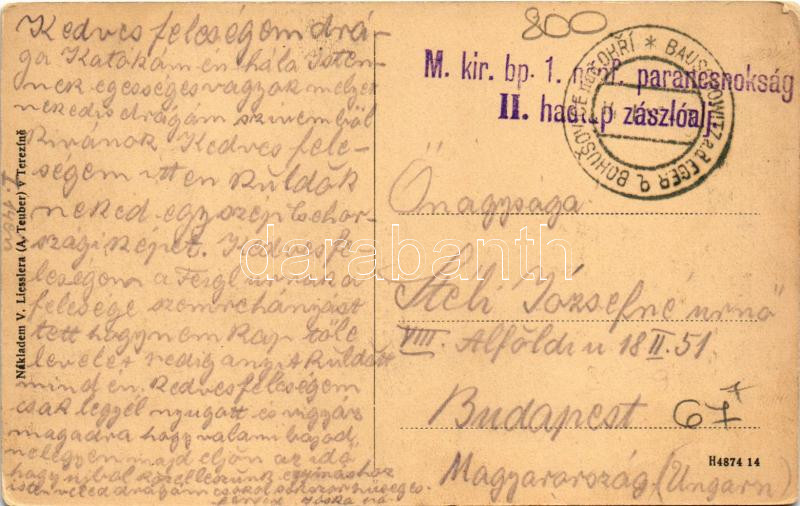 Beschreibung: Terezín, Theresienstadt; Námestí / square, church + "M. kir. 1. népf. parancsnokság II. hadtápzászlóalj" (EK)