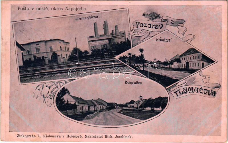 Tlumacov, Cementárna, Námestí, Dolní ulice. Zinkografie L. Klabusaya /... https://www.darabanth.com/de/44-Gross-Auktion/44.1/Ansichtskarten/Tschechische-Republik~18279/Tlumacov-Cementarna-Namesti-Dolni-ulice-Zinkografie-L-Klabusaya-cement-factory-square-s~II3125726