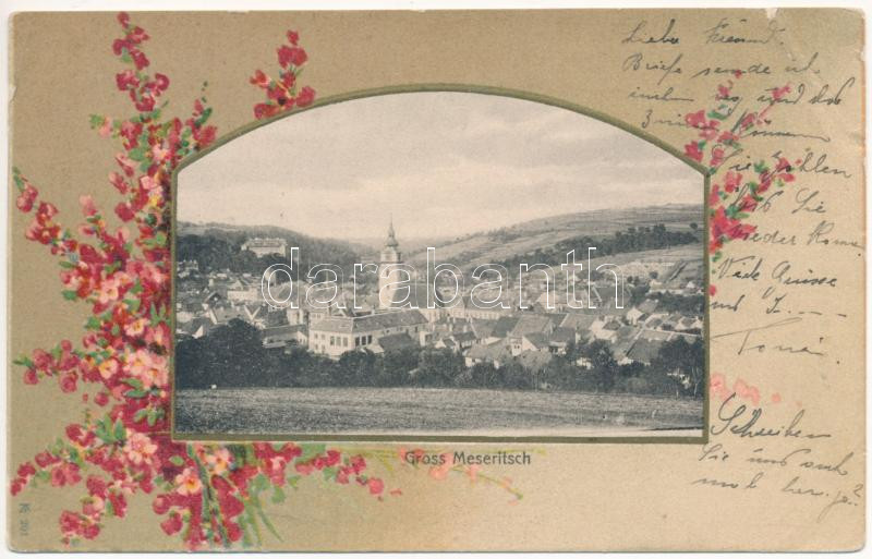 Beschreibung: Velké Mezirící, Gross Meseritsch; F. Zenzinger Art Nouveau, floral litho (EB)