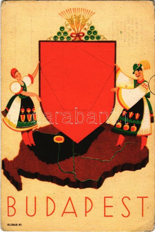 Budapest, magyar folklór művészlap, irredenta propaganda. Globus R.T. ... https://www.darabanth.com/de/44-Gross-Auktion/44.1/Ansichtskarten/Werbungen~18251/Budapest-magyar-folklor-muveszlap-irredenta-propaganda-Globus-RT-Hungarian-folklore-art-po~II3063886